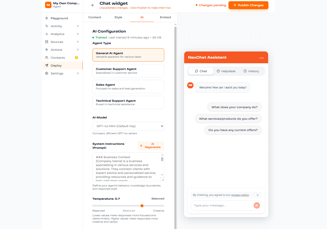 Optimize your NexChat AI Agent's performance with these proven best practices. Learn how to create accurate, helpful, and engaging conversational experiences.