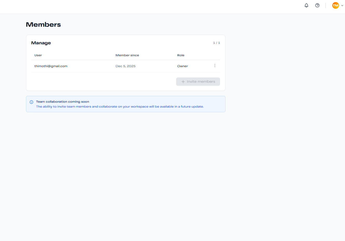 Collaborate with your team by inviting members, assigning roles, and managing permissions. Build and manage your AI agents together.